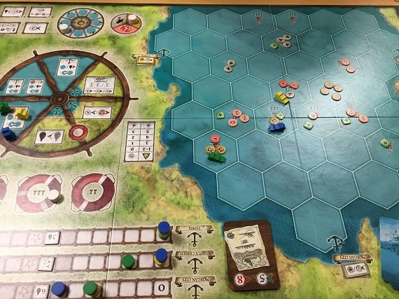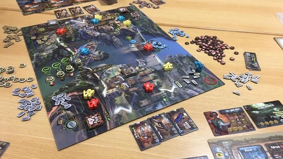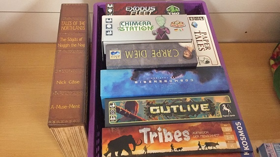 Das war jedoch nicht alles. Vieles weitere, andere Spiele hatten mich so sehr in ihren Bann gezogen, dass ich gleich das Fotografieren vergessen hatte. Und selbst, wenn ich Bilder der anderen Titel hätte, wäre es nur ein kleiner Bruchteil dessen, was an diesem Wochenende auf dem Tisch landete. Denn auch die anderen Teilnehmer hatten sehr interessante Spiele auf dem Tisch. Deswegen mein Aufruf an unsere Gäste: „Wer möchte darf mir gerne Bilder und ein paar Worte dazu zukommen lassen, dann ergänze ich eure Eindrücke.“