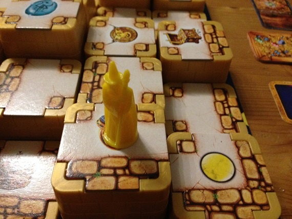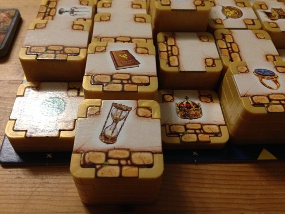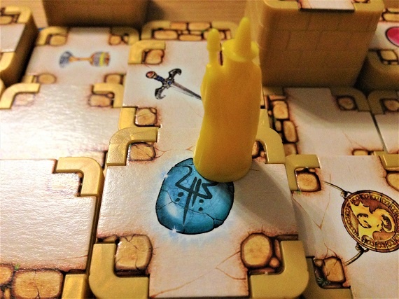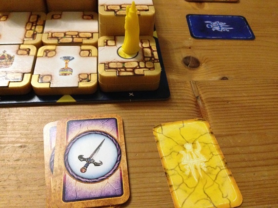 Natürlich sieht man dem 3D Labyrinth sofort an, was einen erwartet. Auf und ab geht es durch das Labyrinth, wobei man nur maximal einen Höhenunterschied von eins überwinden darf. Außer natürlich man hat einen passenden Zauber in der Tasche. Der Rest bleibt dann fast gleich zum Original. Scheib ein Bauteil ein und beweg dich durch die Gänge. Neu ist jedoch, dass man eine Zauberkarte zieht, wenn man in seinem Zug keine Aufgabe erfüllen konnte.