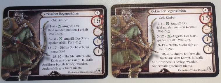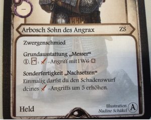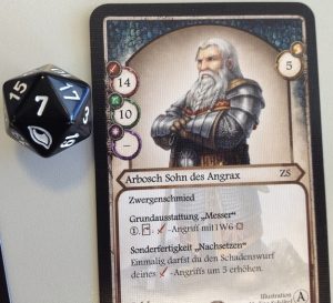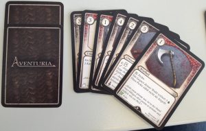 Was ich mir jedoch nicht vorstellen kann ist dass ich Aventuria täglich immer und immer wieder spielen könnte. Schließlich spielt sich ein Charakter eigentlich immer relativ gleich. Es ist zwar möglich Deckbuilding zu betreiben, aber davon war ich persönlich eh noch nie großer Fan. Ein Bekannter meinte jedoch, dass für richtiges Deckbuilding mehr Karten benötigt werden würden. Die interessanten Karten sind nur einmal vorhanden, wodurch man keine richtigen Combos bauen kann. Positiv stellt er jedoch heraus, dass das System zum Deckbau interessant ist. Jeder Charakter darf immer eine bestimmte Anzahl an Karten einer bestimmten Kategorie ins Deck aufnehmen. Die Unterteilung ist dabei recht großzügig. Leichte Fernkampfwaffen, schwere Fernkampfwaffen, leichte Nahkampfwaffen, schwere Nahkampfwaffen, und und und.