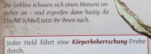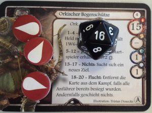 Positiv anzumerken ist auf jeden Fall, dass in jedem der Kämpfe Sondermöglichkeiten zum Einsatz kamen, bis man das Gefühl hatte, dass es im letzten Akt an allen Ecken und Enden brodelte. Ob und welche Zusätze positiv sind wandelt sich natürlich von Spieler zu Spieler und Charakter zu Charakter. Manches ist natürlich für manche Charaktere einfacher zu schaffen. Beispielsweise überlegt man sich schon zweimal, ob man eine Wissensprobe versuchen sollte, bei der die Chance unter 50 % liegt diese zu schaffen. Ist man jedoch das Zünglein an der Waage und muss den Versuch starten, damit nicht alle darunter leider zu können entsteht natürlich ein gewisser Spannungssog, dem man sich nicht entziehen kann.