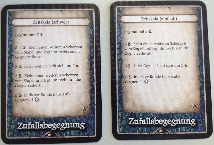 Schade ist nur, dass neben der Tutorial Mission ein einziges „großes“ Abenteuer, welches aus 3 Akten besteht, enthalten ist. Wir haben in unserem ersten Anlauf zu zweit etwas mehr als 2 Stunden gebraucht, um dieses auf normalem Schwierigkeitsgrad zu lösen. Es hat uns aber so gut unterhalten, dass wir gern mehr davon gehabt hätten. Nun ist es zum Glück nicht so wie bei T.I.M.E Stories, bei dem ein gespieltes Abenteuermodul sozusagen „verbraucht“ ist. Man kann die Abenteuer immer wieder spielen und die Zufallsbegegnungen nutzen. Und genau da punktet Aventuria wieder. Es ist relativ schnell aufgebaut und flott gespielt. Und das immer wieder mal.