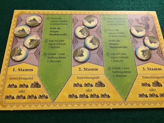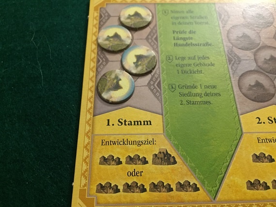 Der Untergang der eigenen Zivilisation klingt auf dem Papier hochinteressant. Im Spiel selbst fühlt es sich dann noch nett bis nervig an. Nervig dann, wenn man zu schnell in die nächste Epoche wechselt und der Gegner lachend die eigenen, untergegangenen Siedlungen überbaut. Unser Rohstoffnachschub rangiert sofort gegen null, so dass wir nur mit einem Kraftakt wieder auf die Füße kommen.