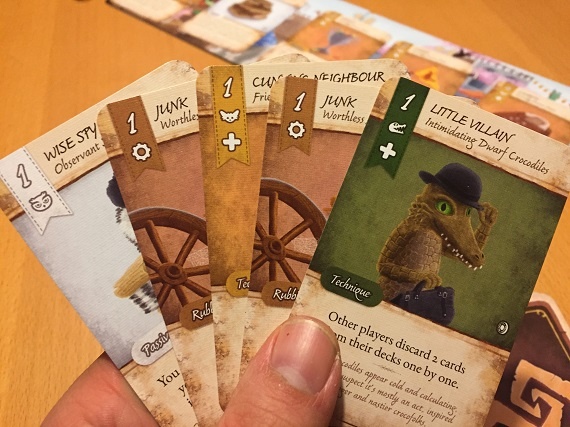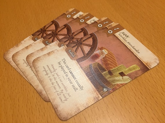 Als wir unsere erste Partie spielten, fühlte sich in „Dale of Merchants 2“ einfach alles richtig an. Die hübsche Optik passte nahtlos in das schnelle, unkomplizierte Spielgefühl hinein. Zusätzlich gab es, im Gegensatz zu vielen anderen Deckbuildern, die Möglichkeit unsere Mitspieler aktiv zu ärgern. Außerdem faszinierte mich die nicht übliche Siegbedingung. Doch Partie um Partie nahm in mir ein Zweifel immer weiter zu. Nämlich der Verdacht, dass man das Spiel gewinnen kann, ohne eine Aktion zu spielen.