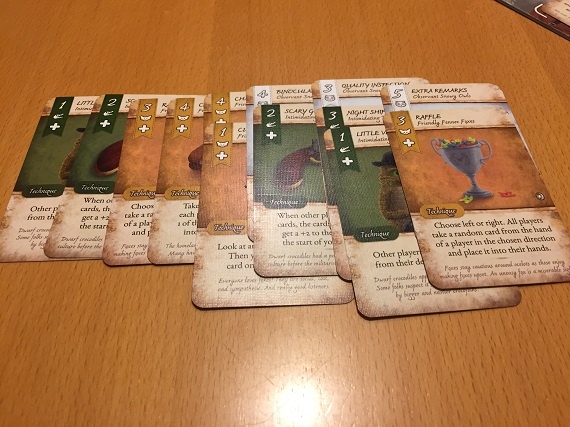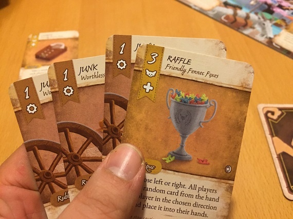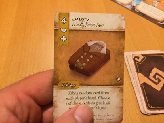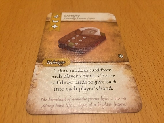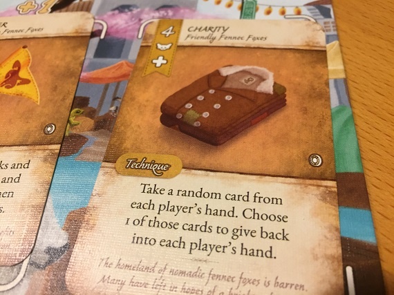 Jein, denn im Normalfall wird niemand derart langweilig spielen wollen. Dafür reizen die Karten einen dann doch zu sehr. Zumindest teilweise. Denn es sind im Grunde genommen schöne Aktionen möglich. Wenn man beispielsweise gezielt mit den Gegnern Karten tauscht, weil man mit der eigenen Kartenhand nichts zu verlieren hat. Und das sorgt für eine Interaktion, die mir in vielen Spielen fehlt.