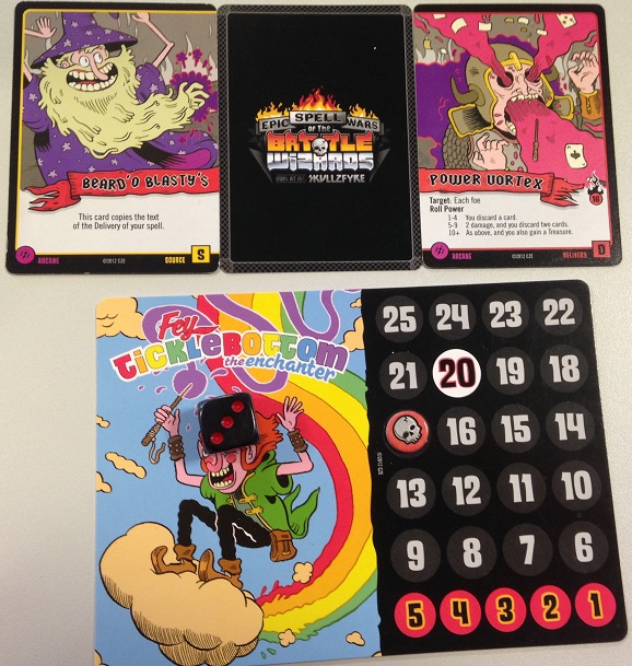 Epic Spell Wars of the Battle Wizards: Duel at mount Skullzfyre ist, wie ihr schon richtig vermutet, ein reines Spaßspiel. Spieler, die taktisch vorgehen und alles durchplanen möchten sind hier genau an der falschen Adresse. Aber daraus mach Epic Spell Wars auch keinerlei Hehl. Es trägt offen mit geschwollener Brust das Abstruse als eine Art Orden vor sich her. Das kann man mögen oder nicht. Mir hat das Spiel bisher recht gut gefallen. Sind alle Spieler im Tisch des englischen mächtig und endlich mal davon überzeugt, dass Planung nur bis zu einem gewissen Punkt etwas bringt (nämlich im Normalfall in der Wahl der Glyphen) spielt es sich recht flott. Es sind auch für nicht Muttersprachler einige Witze dabei. Das volle Spektrum erschließt sich einem natürlich nur, wenn man eine gewisse Vorkenntnis des englischen hat.