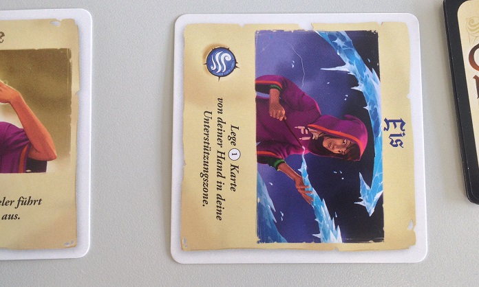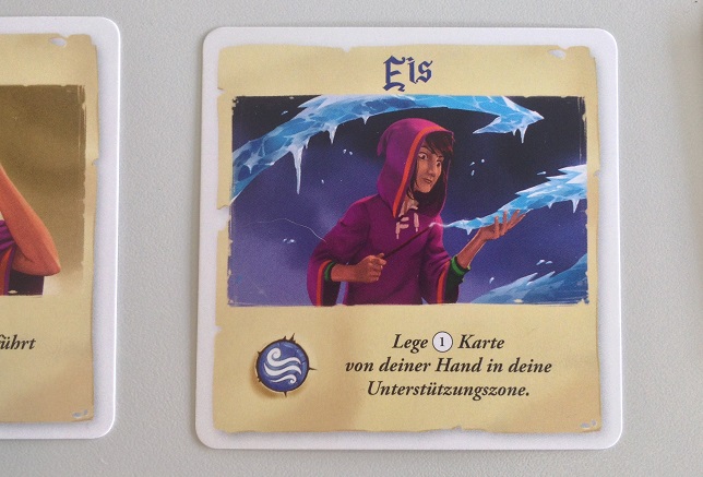 Da wir keine reelle Chance auf genügend Erd-Punkte haben spielen wir wieder den Eiszauber und platzieren unser 2er Erdelement in unserer Unterstützungszone.