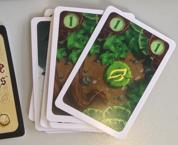 Unser Mitspieler wirft einen Blick in seine Karten und siehe da, er kann auch ein 2er Erdelement abwerfen.