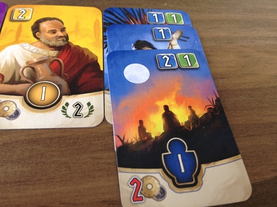 Und obwohl es in „Hadara“ keine richtige Interaktion gibt, spielen wir es dennoch gerne. Dabei freuen wir uns jedes Mal, wenn der Gegner aufs Neue jammert, weil das Geld fehlt und fragen uns immer wieder, ob wir uns eine Karte oder ein Siegel nun tatsächlich leisten können.