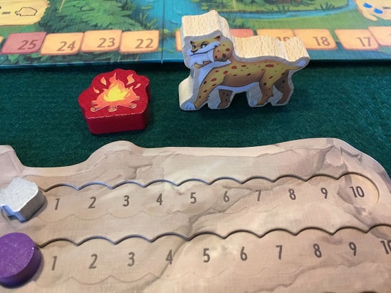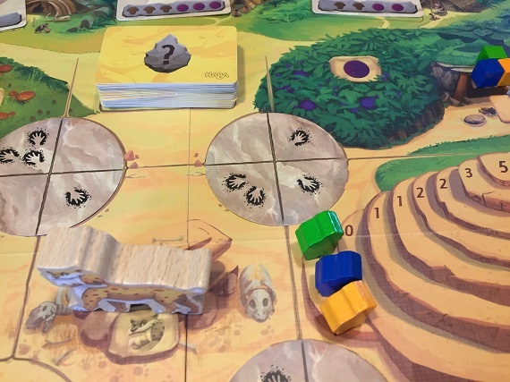 Ja, die Aktionskarten sind etwas zu leicht zu erhalten und dann mit etwas ziehglück recht mächtig. Auch ist es thematisch unpassend, dass man Honga das komplette Spiel bewusst bei sich fressen lässt, weil es lukrativer ist Aktionen tatsächlich zu nutzen, anstatt diese für den Säbelzahntiger zu vergeuden. Doch das sind Überlegungen, die Kinder oder Familienspieler nicht anstellen. Somit fallen sie bei mir nicht ganz so ins Gewicht.