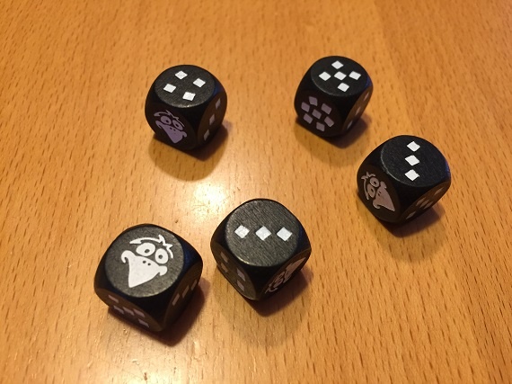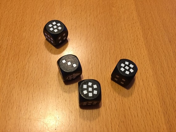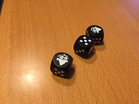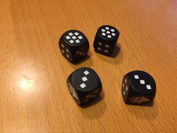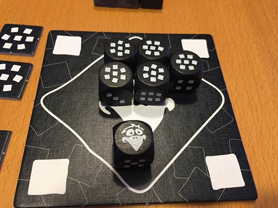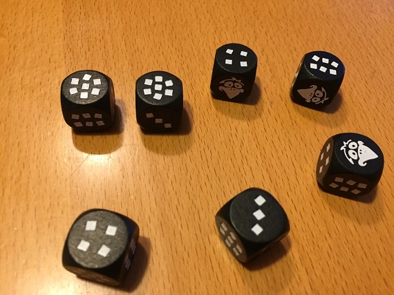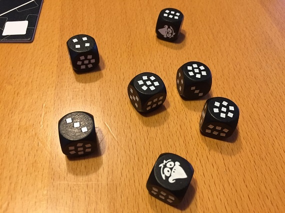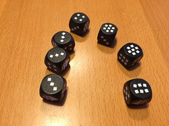 Die restlichen Würfel werfen wir erneut. Diesmal ist keine Sieben dabei, aber ein Rabe.