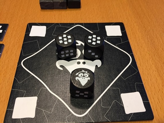 „Pechvogel“ ist schnell erklärt. Wir würfeln, entscheiden uns für ein Ergebnis und müssen dieses den restlichen Zug sammeln. Haben wir vier davon ist alles gut. Wir erhalten einen Punktechip und der nächste ist am Zug. Doch dann wären da noch die Raben, böse Mitspieler und das Übererfüllen eines Ziels. Das Spiel endet, wenn alle Punkteplättchen vergeben wurden. Nun gewinnt der Spieler, der nach Abzug der Minuspunkte durch Frustrate die meisten Siegpunkte aufweisen kann.