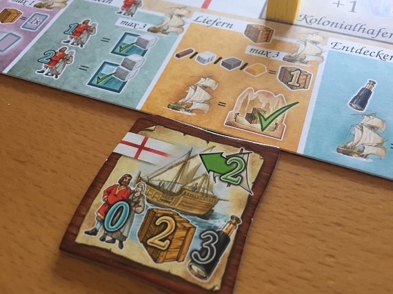 Optisch gesehen gefällt mir „Race to the new found Land“. Es gibt vieles auf dem Spielplan zu entdecken und vor allem die Markierungen auf der Siegpunktleiste bildeten für mich einen Reiz mit Aufforderungscharakter. Schnell war die erste Partie gespielt, die Inseln entdeckt und Handel getrieben.
