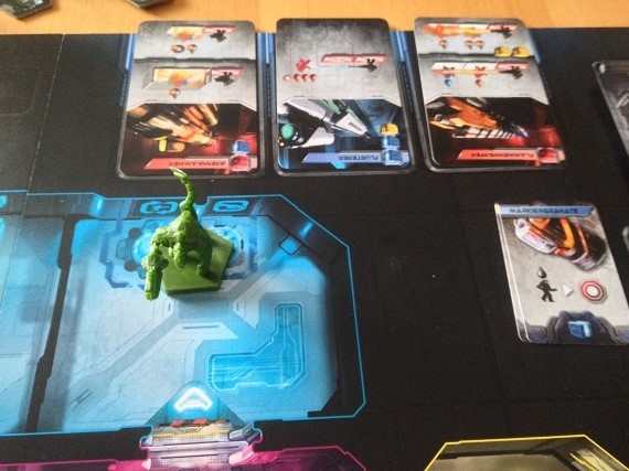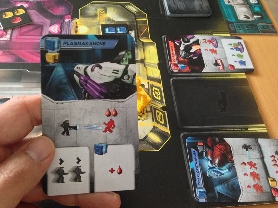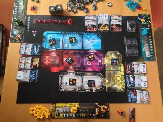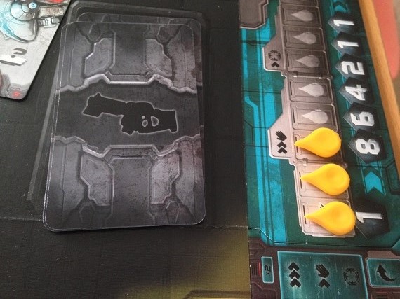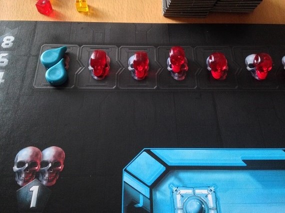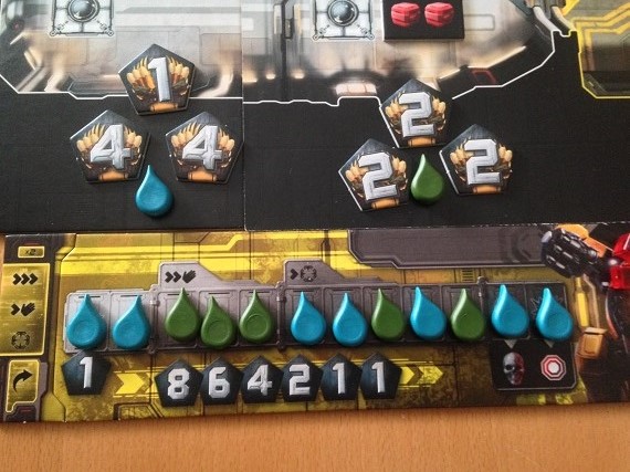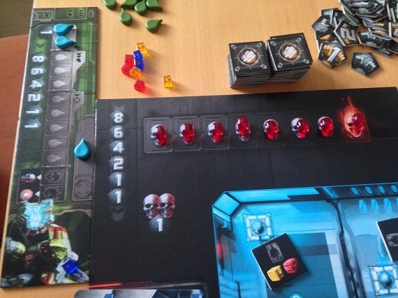 Das Ressourcenmanagement (sammeln an Munitionswürfel und Ausgabe dieser) finde ich persönlich recht deplatziert. Sie blähen das Spiel unnötig auf, ohne Spannung mit zu liefern. Ich gehe mal davon aus, dass man die Waffen damit skalieren wollte, was in PC Spielen einfach die Munition, die in der Arena zu finden ist, geregelt hätte. Eine Skalierung der Waffen ist natürlich vonnöten, aber diese Lösung bremst leider eher.