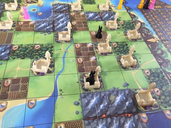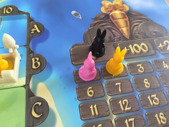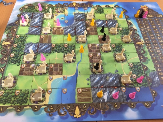 Die Abrechnungen werden im späteren Spielverlauf etwas unübersichtlich. Es tummeln sich viele Hasen auf dem Spielfeld. Hier muss man nun sehen, welche Flächen hängen zusammen, wie viele unterschiedliche Rohstoffe befinden sich darin und was für Städte sind vorhanden. Mit etwas Erfahrung wird es zwar leichter, aber man übersieht leicht mal etwas. Kein absolutes KO-Kriterium, da eigentlich jeder für sein Königreich zuständig ist und eine richtige Abrechnung gewährleisten sollte, aber dennoch spürbar.