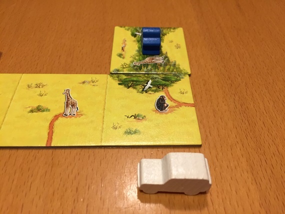 Ja, ich höre euch schon rufen, ihr Euro-Hardcorefans. Der Zufall, er ist zu groß. Ich weiß, das war seit jeher ein Dorn im Auge und das ändert sich auch mit „Carcassonne Safari“ nicht. Das Glück hat einen entscheidenden Einfluss. Zieht man ein benötigtes Plättchen, welches nur zweimal im Spiel vorhanden ist, gewinnt man. Alternativ kann man natürlich weniger riskant bauen. Aber pssst… Das ist unser Geheimnis.