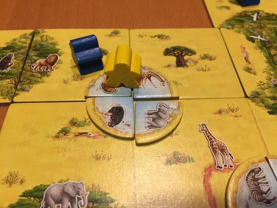 Toll finde ich die Kompensation der Leerzüge. Also Züge, in denen man nichts gemacht hatte, als ein neues Plättchen anzulegen. Nun kann man durch Wasserlöcher oder dem Umstellen von Rangern dennoch etwas Sinnvolles tun.