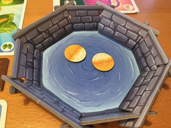 Durch die niedrige Einstiegshürde, die die Regeln bieten, kann man dafür beinahe jeden mit ins Spiel einbinden. Dabei bieten die „Spielgegenstände“ wie der Brunnen und der Teich eine schöne Immersion in das Thema.