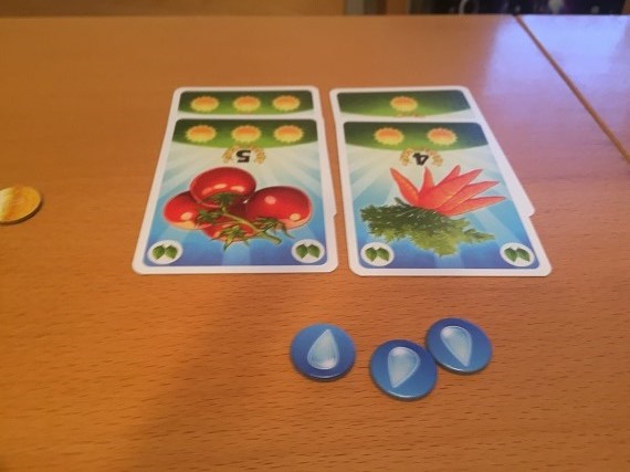 In „Chill & Chili“ sammeln wir Gemüse in Form von Karten. Haben wir genügend, können wir diese anpflanzen. Aber, damit das Punktekonto so richtig heiß läuft, dürfen wir das Gießen nicht vergessen. Das Ganze bei einem strengen Zeitlimit. Wenn das mal gut geht.