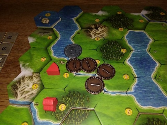 Nehmen wir als Beispiel die Rundenbonusse. Bei „Terra Mystica“ können diese so hohe Punktzahlen abwerfen, dass es sinnvoll sein kann, gezielt darauf zu spielen. Bei „Clans of Caledonia“ wird dieses Element von den starken Aufträgen dominiert. Die Aufträge werfen so viele Punkte ab, dass es nicht sinnvoll ist zugunsten eines Rundenbonus die Strategie zu ändern. Man freut sich also, wenn der Rundenbonus zum, durch Aufträge und Claneigenschaften geführten, Spiel passen. Wesentliche spielerische Auswirkungen liegen hier kaum vor, so dass es sich um eine Spielkomponente handelt, die zwar die Komplexität etwas aufbläht, spielerisch jedoch zu wenige Auswirkungen hat, als dass man nicht darauf verzichten könnte.
