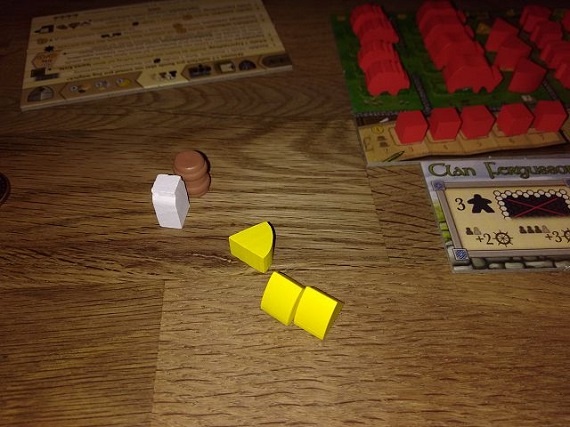 Für meinen eigenen Spielegeschmack ist mir „Clans of Caledonia“ zu gleichförmig. Die Claneigenschaften bieten zwar etwas Varianz, sind aber recht offensichtlich zu spielen. Letztlich hangelt man sich immer an den Aufträgen entlang. Für ein paar Partien hat es mir Spaß bereitet, ist auf Dauer jedoch im Aufbau zu eintönig.