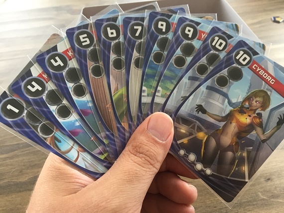 Wenn ihr plant „Custom Heroes“ zu zweit zu spielen, vergesst es sofort wieder. Das Stichspiel entfaltet seine volle Wirkung erst mit einer höheren Spielerzahl, die auch bereit ist auf jegliche Planung zu verzichten. Denn, obwohl ich Karten bis zu einem bestimmten Punkt manipulieren kann, ist „Custom Heroes“ nicht wie andere Stichspiele. Hier schlägt das Glück viel härter zu. Aber dennoch gibt es immer die Möglichkeit Schadensbegrenzung zu betreiben oder doch noch die eine, siegreiche Kombination aus Karten und Aufwertungen zu finden. Toll sind auch die Momente, in denen man einen Mitspieler zum Aussetzen zwingt und ihm das Siegergrinsen aus dem Gesicht wischt.
