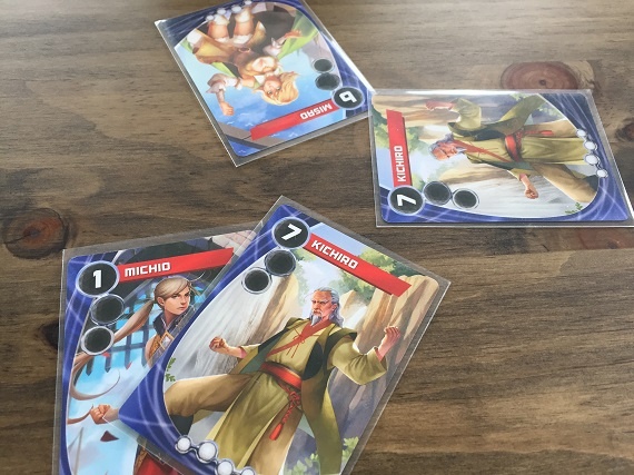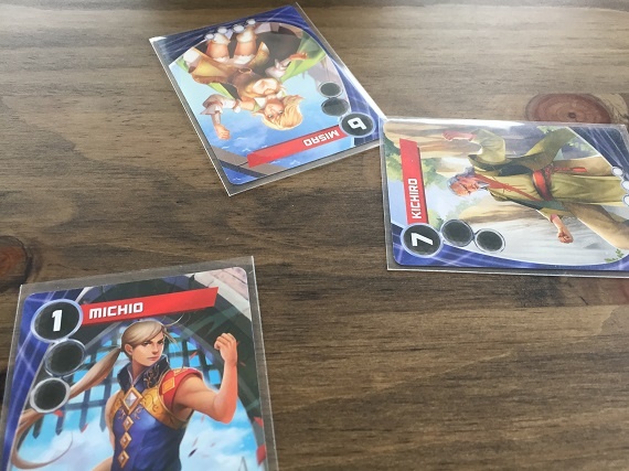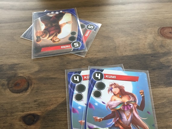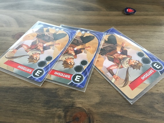 Das Stichspiel in „Custom Heroes“ ist schnell erklärt. Der Startspieler legt eine beliebige Anzahl gleicher Karten aus. Der nächste muss dieselbe Menge mit mindestens demselben Wert ablegen, um Chancen auf den Stich zu haben. Passen ist auch jederzeit möglich. Sogar mit der Option später wieder in den Stich einzusteigen. Doch Vorsicht. Passen alle Spieler, gehört der Stich demjenigen, der zuletzt Karten gespielt hat. Das ist jedoch kaum von Bedeutung, denn nicht die Stiche sind wichtig. Vielmehr ist es Ziel die eigenen Handkarten als erster los zu bekommen. Und damit das auch funktioniert haben alle Spieler Aufwertungen, mit denen sie ihre Handkarten manipulieren können. Und damit das Chaos komplett ist, bleiben Aufwertungen während des kompletten Spiels auf den Karten.