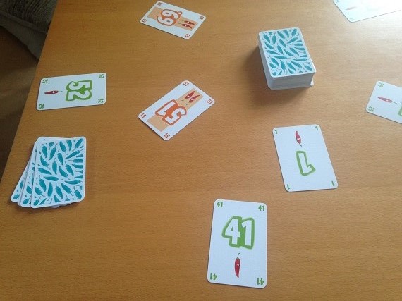 „Dicht dran“ schlägt in die Kerbe der kleinen, gemeinen Kartenspiele. Würde „6 nimmt“ nicht existieren wäre es auch bestimmt ein Anwärter auf eine Platzierung im führenden Bereich eben jener. Warum? Man kann das Spiel besser beeinflussen, als das Hornochsen-Pendant. Was auf den ersten Blick positiv wirkt ist für mich persönlich ein Aspekt, der in solchen Spielen eben nicht fehlen darf. Klar, je weniger Karten man auf der Hand hat, desto gefährlicher ist es außerhalb der Range zu liegen und Karten ziehen zu müssen, aber dadurch, dass alle Informationen offen liegen kann man eben besser beeinflussen ob und wann es nötig ist Karten nach zu ziehen.