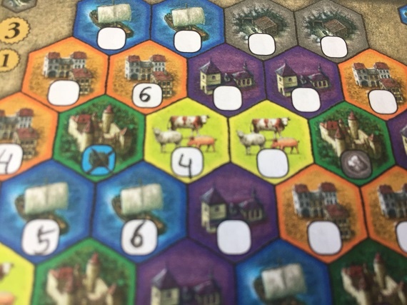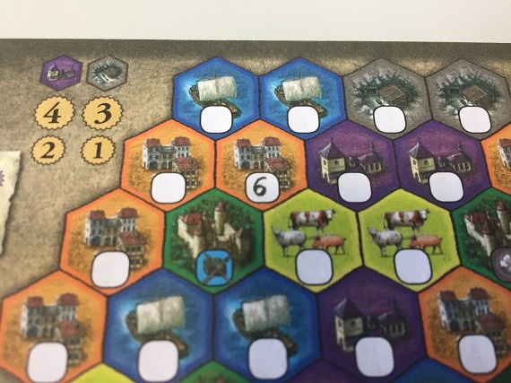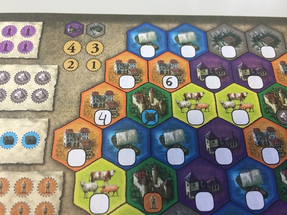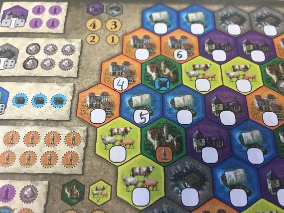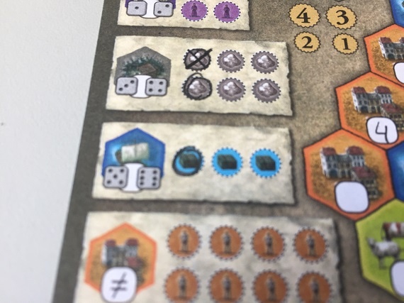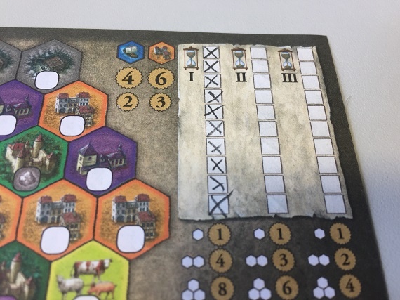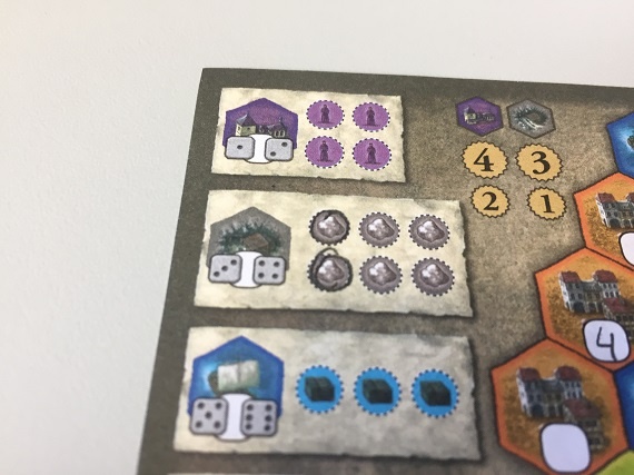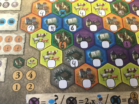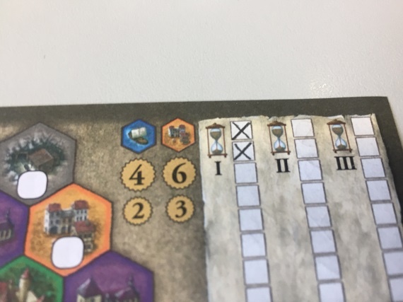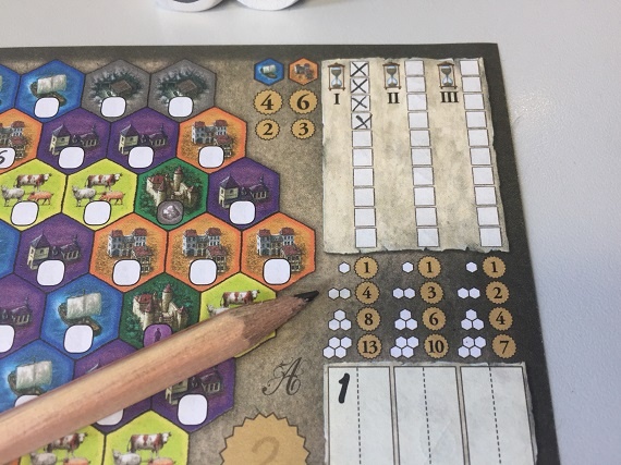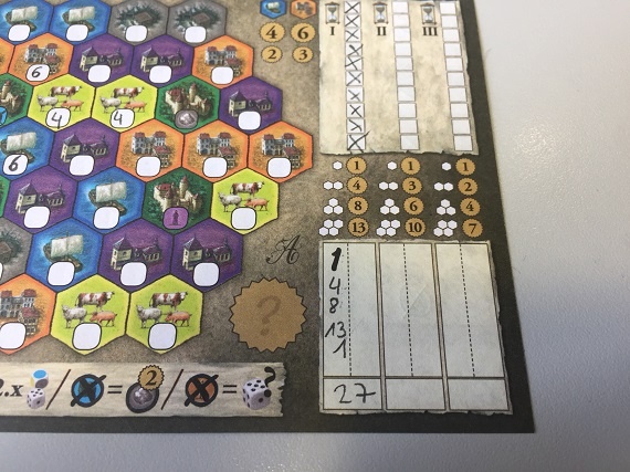 Die einzelnen Bonusmöglichkeiten helfen einem da natürlich, was dann zu einem äquivalent des berühmten „Punktesalates“ führt. Egal, was man macht, man erhält Punkte. Alle fühlen sich gut, keiner benachteiligt. Niemand fühlt sich, als würde er richtig schlecht spielen, was dem Belohnungszentrum im Hirn hilft. Ich bin kein allzu großer Fan davon. Denn dann fühlen sich die einzelnen Züge auch nicht mehr allzu wichtig an. Und so kommt es mir bei „Die Burgen von Burgund das Würfelspiel“ auch eher so vor, als wäre fast egal, was ich tue. Irgendwas geht immer.