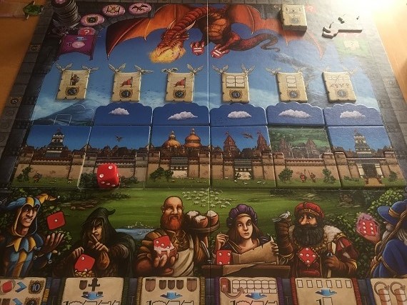 Eines vorweg. Es kam die letzte Zeit kein Titel häufiger bei uns auf den Tisch, als „Feuville“. Für mich gehört es zu den sehr guten Familienspielen. Durch die schöne Optik ist die Hemmschwelle schön gering gehalten. Die Regeln selbst überfordern auch niemanden, selbst, wenn man erst einmal ein Spiel zum Einstieg benötigt, um die Widrigkeiten mit dem Drachen und den Punkten einschätzen zu können. Hat man es dann geschafft den Leidtragenden, von üblen Verwüstungen bei einem Pasch, Lösungen aufzuzeigen, ist auch dieser einer weiteren Partie nicht abgeneigt.
