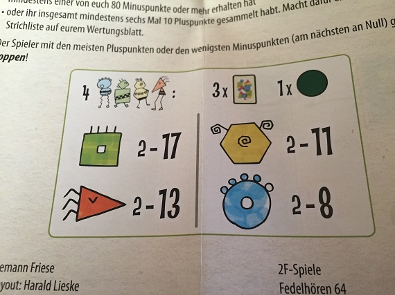 In Vollbesetzung funktioniert der Gedanke hinter „Foppen“ am besten. Alle Karten sind im Spiel und man kann relativ taktisch vorgehen. Sind es weniger Spieler, ist man häufiger damit beschäftigt nachzusehen, welche Karten überhaupt im Spiel sind. Nebenher sollte man sich natürlich auch merken, was bereits gespielt wurde. Hier verstehe ich nicht, warum man nicht einfach von jeder Farbe genau gleich viel Karten nimmt, anstatt die Sätze unterschiedlich zu gestalten. Das macht das Spiel unnötig unübersichtlich.