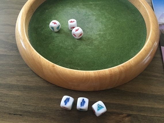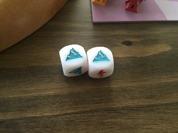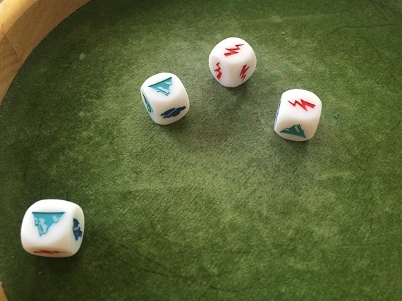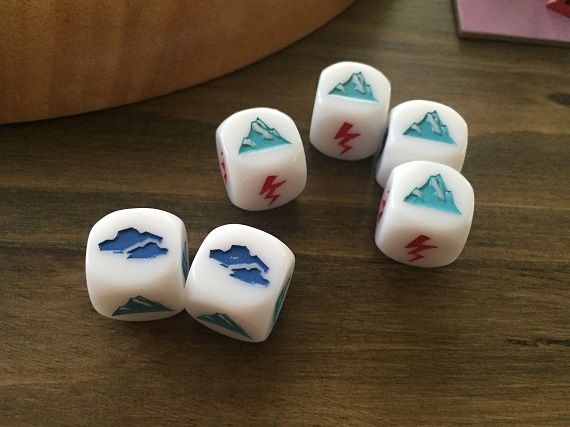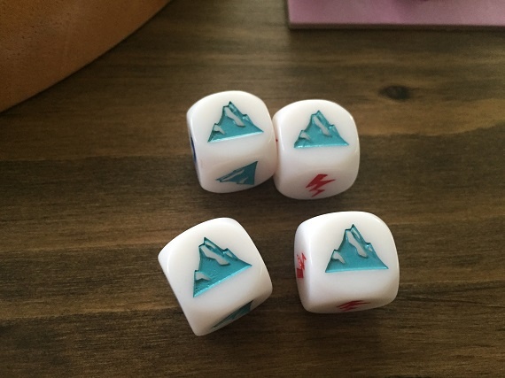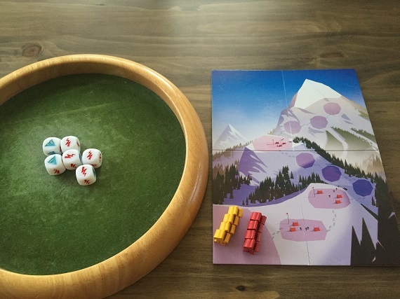 In „High Risk“ besteigen wir einen Berg. Gewonnen hat, wer zuerst alle seine Klettermaxe auf die Spitze befördert hat. Bewegt werden diese mit Würfeln. Je mehr Berge die Ergebnisse zeigen, desto weiter kommen wir voran. Dabei dürfen wir beliebig oft weiterwürfeln. Doch Vorsicht, sind nur Blitze sichtbar, stürzt unser führender Bergsteiger ab.