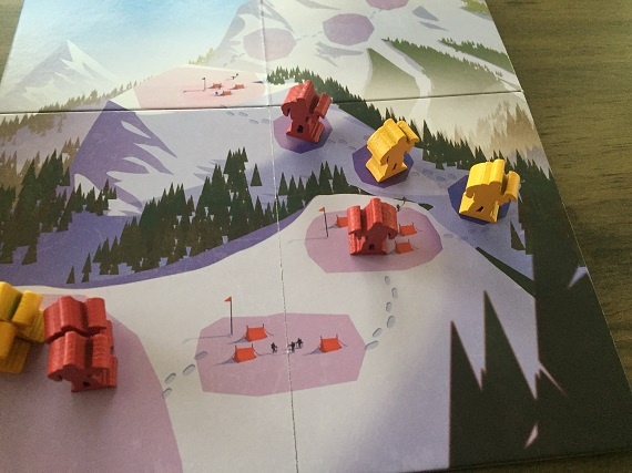 Dabei krankt es bei dem Spiel an ein paar Stellen. Der Push your Luck Aspekt mag hier nicht so richtig zünden. Die Belohnung für ein erfolgreiches Wagnis fühlt sich nicht groß genug an, um sich selbst davon zu überzeugen, dass eine Chance von 50 % erfolgreich zu sein eigentlich richtig gut ist. Auch, wenn Mitspieler an der Reihe sind, ist die Schadenfreude über einen Absturz nicht groß genug, um wirkliche Emotionen zu fördern. Einzig das Verdrängen eines Mitspielers auf dem Weg sorgt für hämische Kommentare und dadurch etwas Witz. Durch die relativ vielen Engstellen passiert das jedoch dann auch zu häufig. Dabei verfliegt nicht nur der Spaß, sondern das Spiel wird gefühlt unnötig in die Länge gezogen. Und das, obwohl eine Partie meist nie länger, als 15 Minuten dauert.