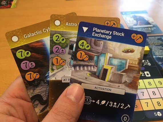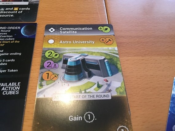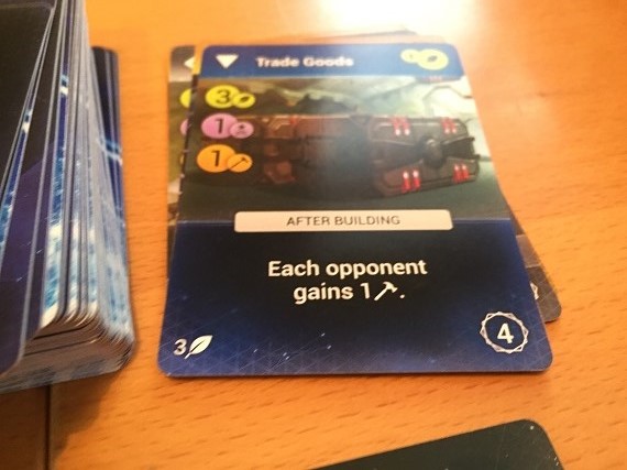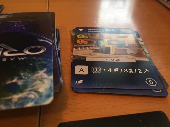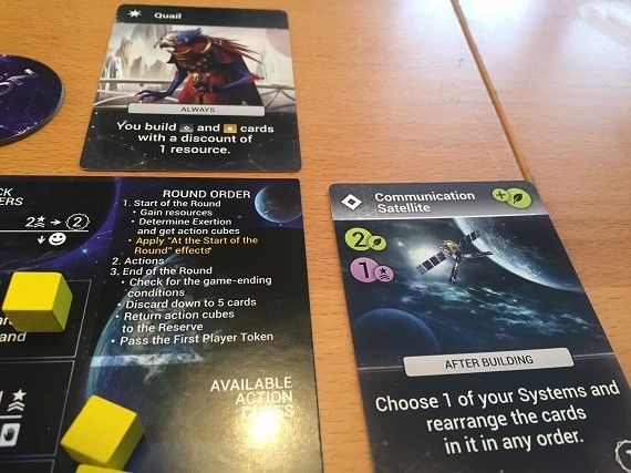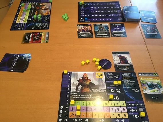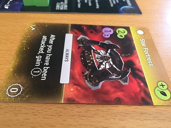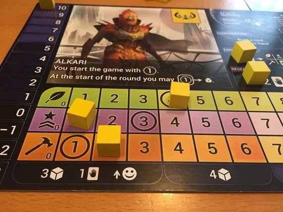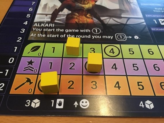 Die vierte wirft er ab. Seine Alienrasse bietet noch den Bonus, dass er eine Ressource "Flotte" erhält.