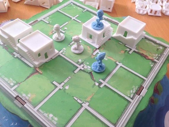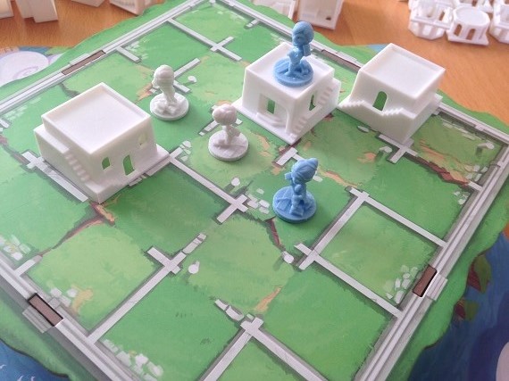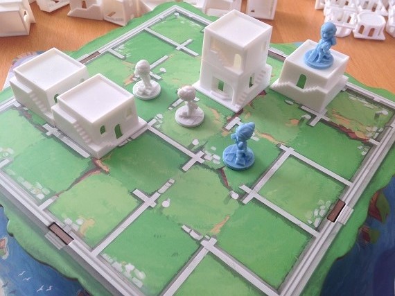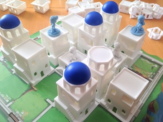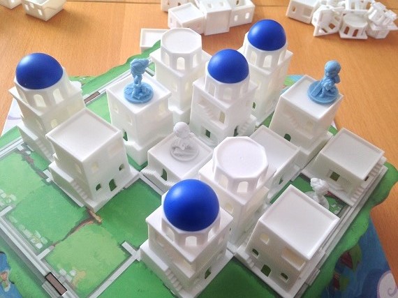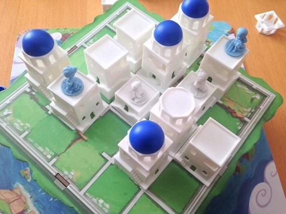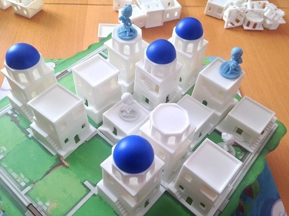 „Santorini“ ist schnell gelernt. Im eigenen Zug darf man einen seiner Arbeiter 1 Feld bewegen und 1 Turmebene bauen. Wer zuerst auf dem 3. Stockwerk steht, der hat gewonnen. Natürlich gibt es hier noch ein paar Regeln zu beachten. Später kann man das Spiel noch durch Helden- und Götterfähigkeiten ausbauen, die die Denkmaschinerie fordern.