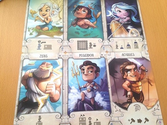Die Fähigkeiten, die man ins Spiel einbauen kann sind zwar allesamt nett, aber sie tun meiner Meinung nach dem Spiel nicht gut. Sie sind einfach nicht richtig austariert. So kann es dann vorkommen, dass es ein Spieler um Längen zu einfach hat. Wie zum Beispiel Pan, der einfach vom 1. Stock herunterspringen muss, um zu gewinnen. Oder Demeter, die in ihrem Zug immer doppelt bauen kann. Ja, ich weiß, ein Spieler wählt die Fähigkeiten für das Spiel und der andere sucht sich seine zuerst aus, aber hier hätte ich mir mehr Tuning gewünscht. Sozusagen Klasse statt Masse.