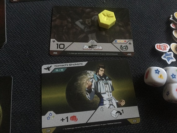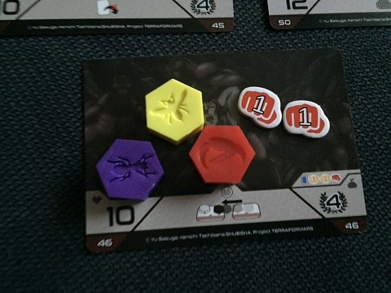 Das Spiel selbst ist leicht problembelastet. Es herrscht das Glück an allen Ecken und Enden. Und nein, ich beziehe mich dabei nicht nur auf die Würfel. Die Karten selbst sind auch nicht balanciert, so dass es leicht passiert, dass ein Spieler ohne große Anstrengung oder spielerisches Geschick einen immensen Vorteil davonträgt. Ja, ich weiß, es gibt viele Titel, die genau darauf aufgebaut sind, aber bei „Terra Formars“ fühlt es sich einfach vollkommen falsch an.