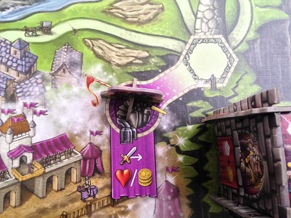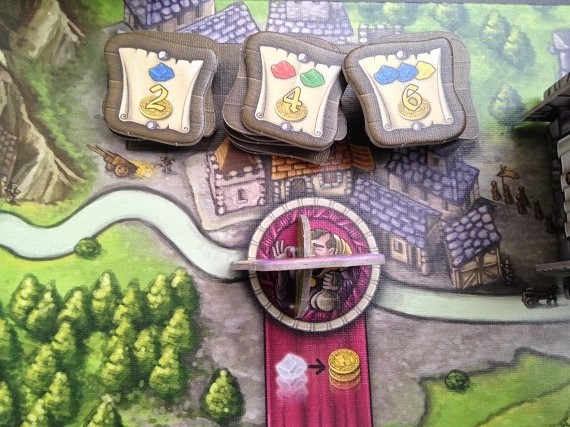 Damit es nicht bei einem verunglückten Wortwitz bleibt, gehe ich gleich näher darauf ein. In Touria muss man in seinem Zug nicht nur überlegen, was man nun am besten für eine Turmseite nutzen sollte. Im fortgeschrittenen Stadium wirft man auch einen Blick darauf, welche Möglichkeit dem nächsten Spieler dadurch eröffnet wird. Zu Beginn ist man erst einmal damit beschäftigt, was man denn nun am besten durchführt. Denn nicht nur die Wahl der Aktion ist wichtig, sondern auch der Überblick, welchen Weg man für diesen gehen muss.