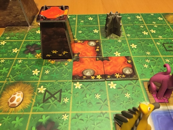 Die Idee ist zwar nichts revolutionär Neues, sondern setzt sich aus altbekannten Mechanismen zusammen. Doch, wer Kinder im richtigen Alter hat, sollte die Chance nutzen, um den Nachwuchs den nächsten Schritt des Hobby Spiels näher zu bringen. Einzig, dass man die Vulkane und Berge immer wieder auseinanderbauen muss, ist etwas ungeschickt. Ich glaube, dass sie durch ihre Machart zwar zu Beginn schön aussehen, doch Partie um Partie leiden werden und früher oder später kaputt sind.