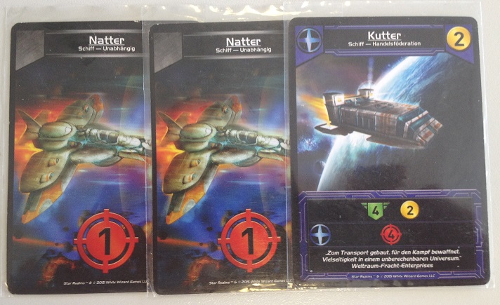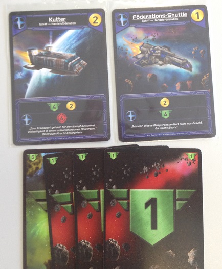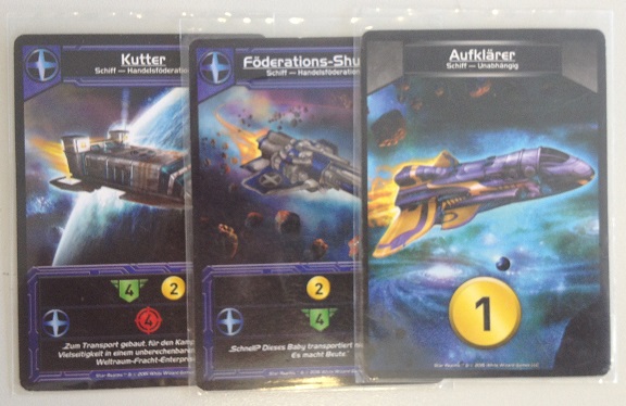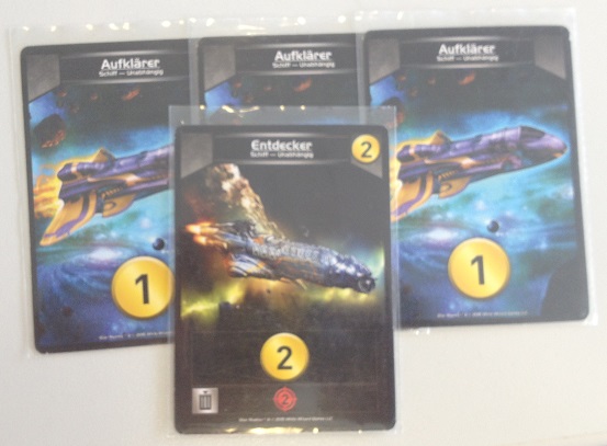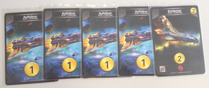 Die Gambit Erweiterung ist von der Kartenanzahl her gesehen schon mal die Umfangreichste. Dabei wird nur 1 neue Standardkarte für die Spielerdecks eingeführt. Der Söldner-Kreuzer, der in jeder Runde, wenn er gespielt wird, eine beliebige Fraktion annehmen kann.