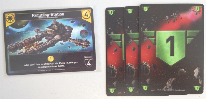 Was kann man von einer Erweiterung erwarten, die Basen und Kriegsschiffe heißt? Richtig, neue Karten fürs Standarddeck. Also reinmischen und die Auswahl erweitern.