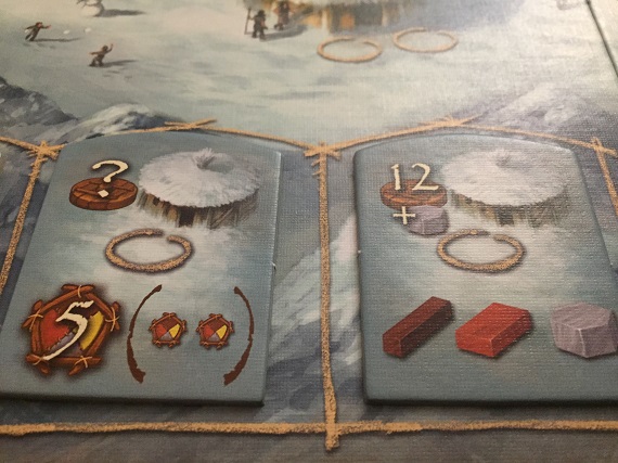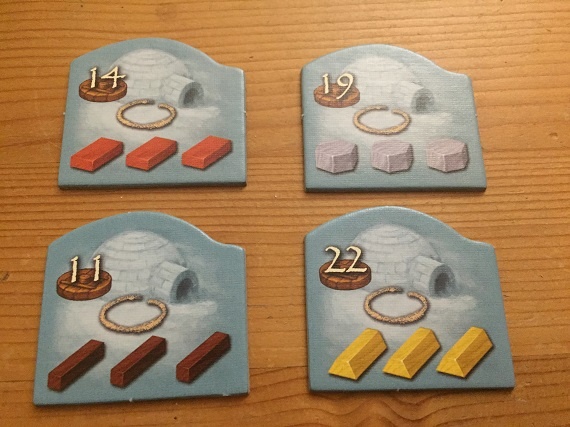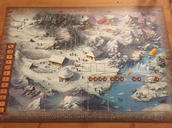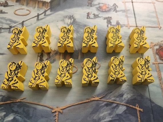 Die Aufmachung gefällt mir sehr gut. Die Winterseite des Spielmaterials weiß optisch zu gefallen. Jedoch brechen die Karten aus der Optik aus. Ein neuer Kartensatz mit Wintermotiven hätte dem Spiel sehr gut gestanden. Während des Spiels habe ich nicht sonderlich darauf geachtet, aber optisch aus einem Guss sieht einfach anders aus. Die bedruckten Meeple sind ein netter Einfall. Ich hoffe das macht Schule und wir werden noch viele weitere menschenähnliche Holzsteinchen haben, die uns in zukünftigen Spielen begleiten.