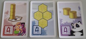 Unsere Bonusaktion nutzen wir für eine weitere Aufgabe. Diesmal ziehen wir eine des Gärtners. Hier heißt es, dass auf insgesamt 3 gelben Gärten 3 Bambusstücke stehen müssen.