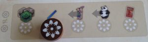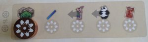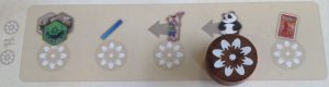 Mit diesem können wir einen Bambus wachsen lassen, was wir auf unserem gelben Feld sofort ausnutzen. Durch den Gartenpflege Bonus auf diesem Feld steigt der Bambus sogar um 2 Einheiten an.