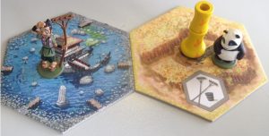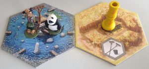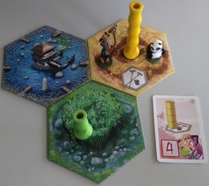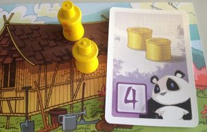 Die zwei gesammelten Bambusstücken tauschen wir sofort gegen 4 Siegpunkte ein.