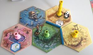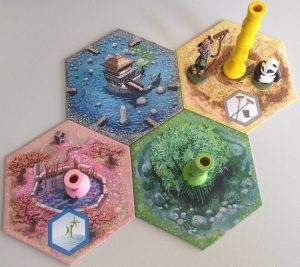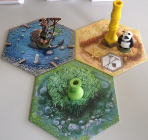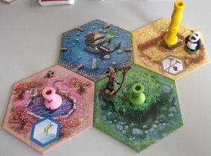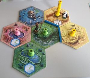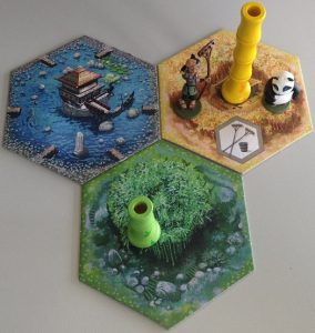 Dadurch haben wir eine unserer Aufgaben erfüllt. 4 Bambusstücke auf einem Gartenpflege Feld wachsen lassen. Die ersten 4 Siegpunkte gehören uns.