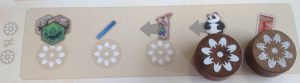 Wir dürfen 3 Gartenplättchen ziehen und uns eines davon aussuchen.