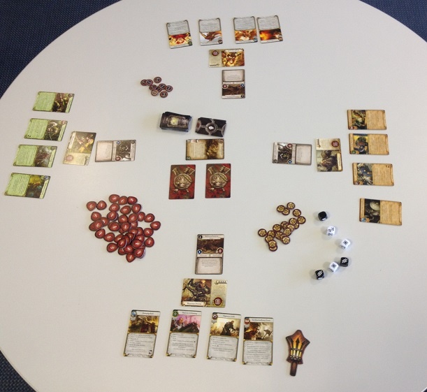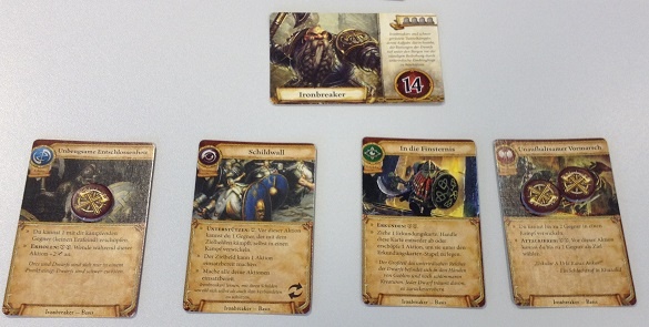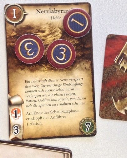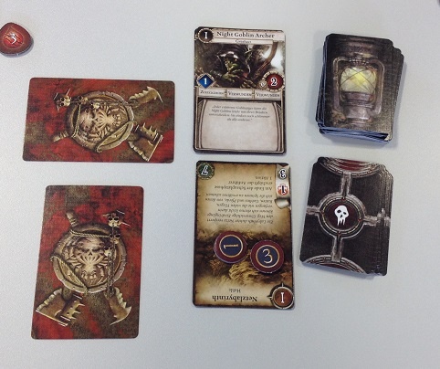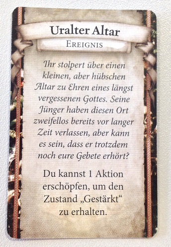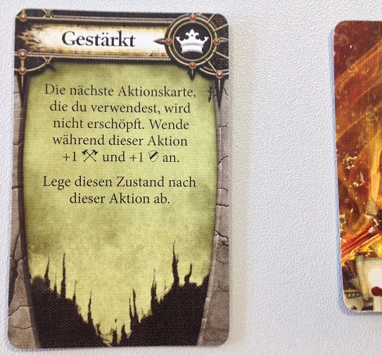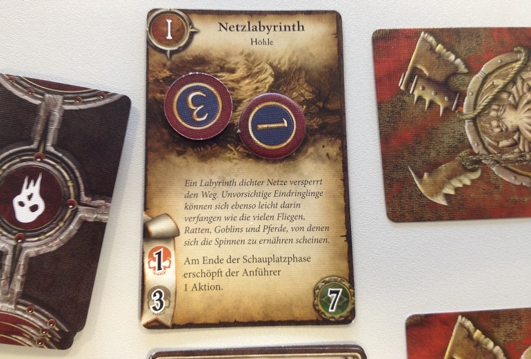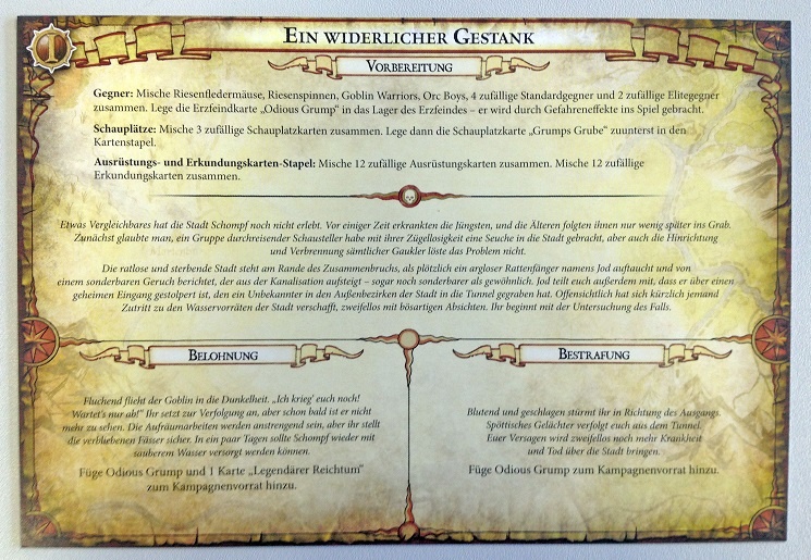 Negativ war für mich, dass ich viele Anläufe brauchte, um überhaupt die erste Quest zu erfüllen. Wobei das eigentlich nichts macht. Denn das Abenteuer geht dennoch weiter. Denn der Ausgang der Quest entscheidet lediglich, was für Karten in den allgemeinen Vorrat kommen. Gewinnt man, wird man belohnt, verliert man erschwert sich die nächste Quest.