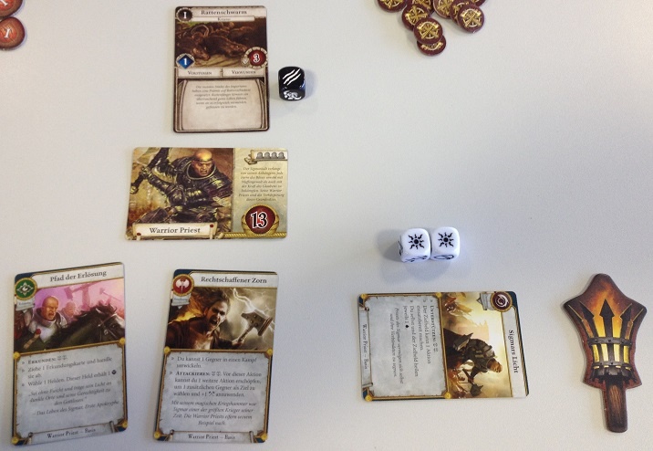 Alles in allem kann ich das Warhammer Quest: Abenteuerkartenspiel empfehlen. Mir persönlich macht es Spaß. Ehrlicherweise muss ich sagen, dass das nicht allen meinen Mitspielern so erging. Aber das waren meisten Spiele, in denen wir durch die Verteilung der Karten so richtig niedergeknüppelt wurden. Wobei wir trotz schwieriger Karten dennoch immer bis kurz vor das Ziel der Quest kamen. Im Nachgang muss ich zugeben, dass wir es wahrscheinlich geschafft hätten, wenn wir besser zusammen gearbeitet hätten. Nie war ein einzelner Würfelwurf schuld, dass wir nach einer Stunde das Szenario verloren hatten. Und das spricht ganz klar für die Tarierung der Quests. Auch, wenn diese kein Zuckerschlecken sind.