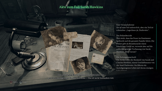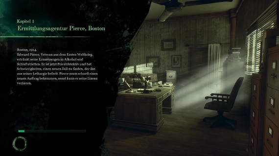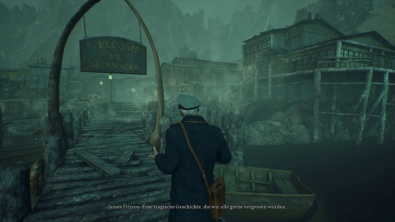 Wir spielen „Call of Cthulhu“ aus der Ego-Perspektive. Dabei steuern wir keinen Übermenschen, sondern einen vom ersten Weltkrieg gezeichneten Privatdetektiv. Dieser begibt sich nach Darkwater, um das Schicksal der Tochter eines Firmenmoguls zu lösen. Sie hat nicht nur Bilder gezeichnet, die einen Wahnsinn vermuten lassen, sondern kam vor kurzem mit ihrer Familie bei einem Brand im Haus ums Leben.