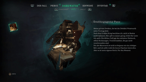 Ein kleines Highlight sind dabei die „Rekonstruktionen“. In diesen versuchen wir in einem begrenzten Raum Geschehnisse zu ergründen. Dabei baut sich Stück für Stück eine Szenerie auf, die uns neue Hinweise für unseren Fall liefert. Ja, auch hier ist der Part im Grunde genommen ein Suchspiel nach markierten Bereichen, aber die Atmosphäre täuscht hier über vieles hinweg.